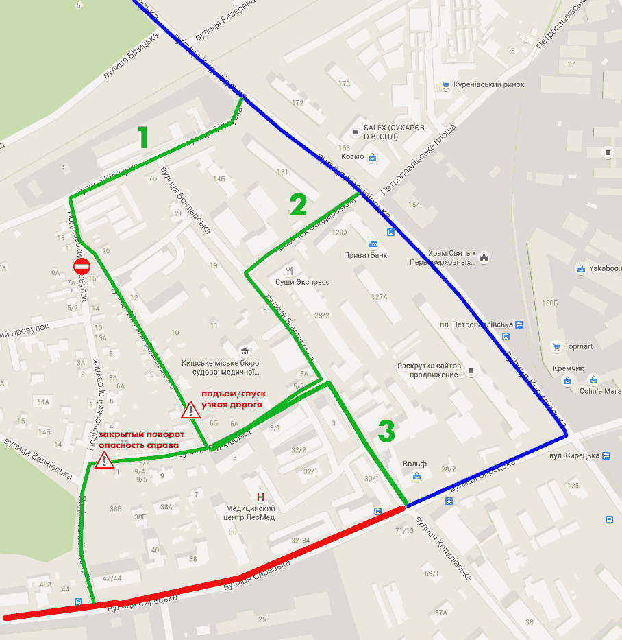 Если едете с Кирилловской (с Подола) или от Скляренко - можете объехать по варианту 3, хотя это уже имеет меньше смысла.
