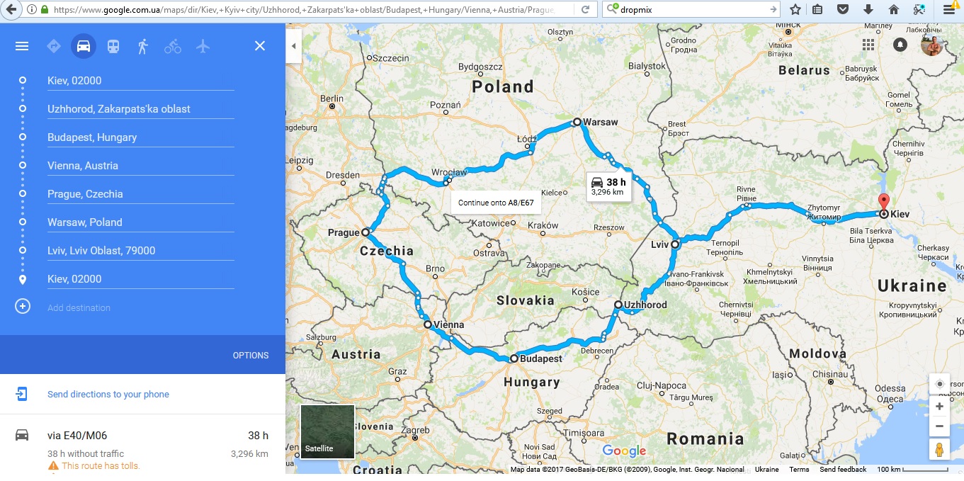 Маршрут: Киев-Ужгород-Будапешт-Вена-Прага-Варшава-Львов-Киев. Бюджет - 2 000 евро.