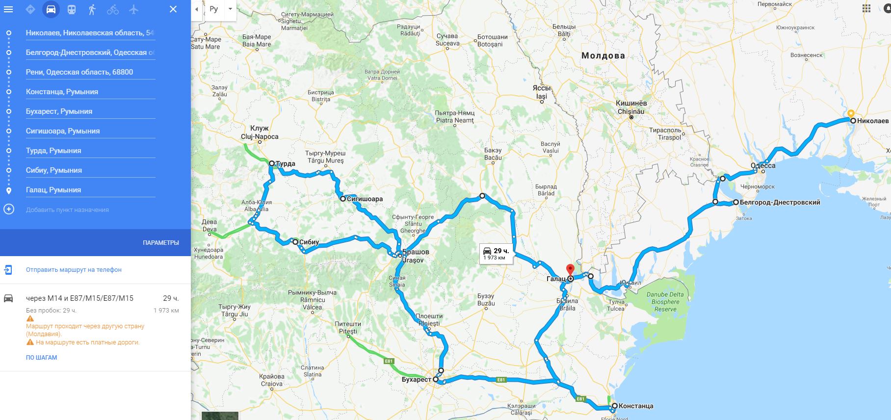 День 2. таможенные переходы Рени - Джурджулешты и Джурджулешты – Галац – Браила – Фетешти – Чернаводэ - Констанца.