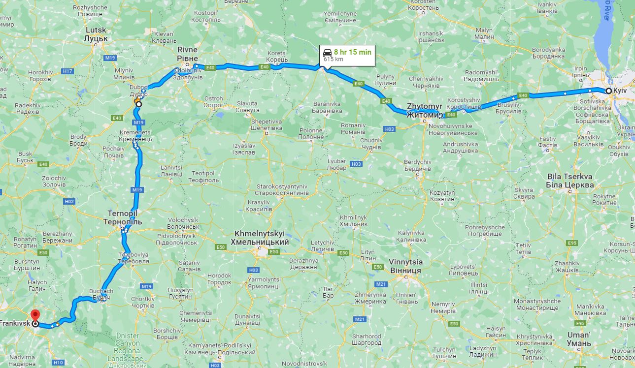 1. Київ - Житомир - Рівне - Дубно - Золочів - Тернопіль - Івано-Франківськ